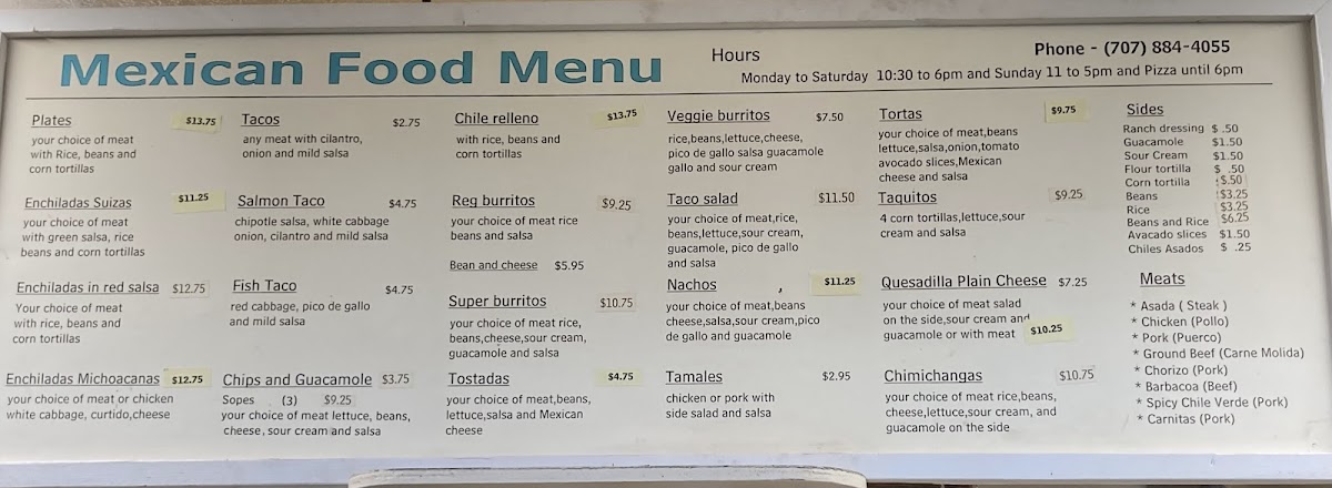 Introducing the Menu at Bakery Pizza Mexican Food